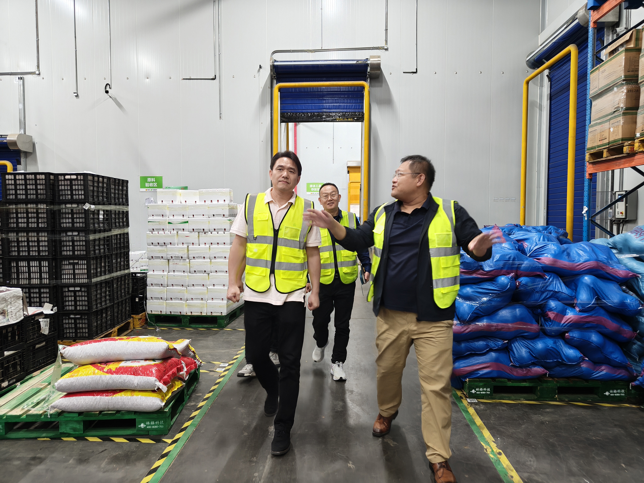 王彦总裁前往冷库作业区、施工区、中控室和泵房等关键场所,实地核查操作规范情况,检视安全防护执行,并了解了北京园区消防演练组织频次、流程预案及人员实操能力。期间,王彦总裁还与园区客户进行了交流,调研了客户运营现状及服务需求,并送上节日祝福。