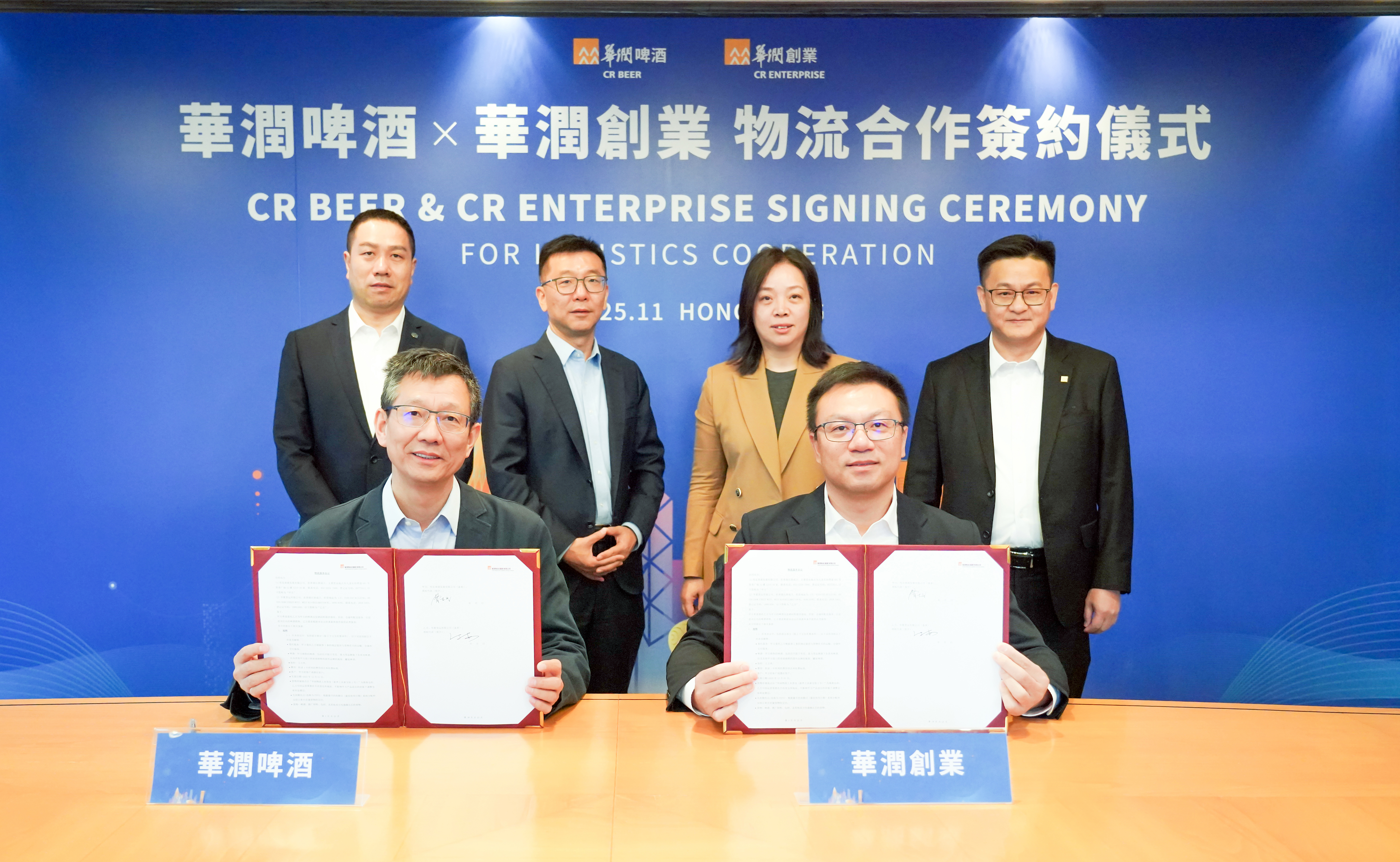 11月27日,华润啤酒与华润创业在香港华润大厦举行物流合作签约仪式,华润啤酒董事会主席赵春武,华润啤酒副总裁、华润雪花总经理李小冬,华润雪花营运中心总经理曹志民,华润创业董事长程洁、副总裁褚卓伦,华润物流总经理吴桉及相关负责人出席仪式。